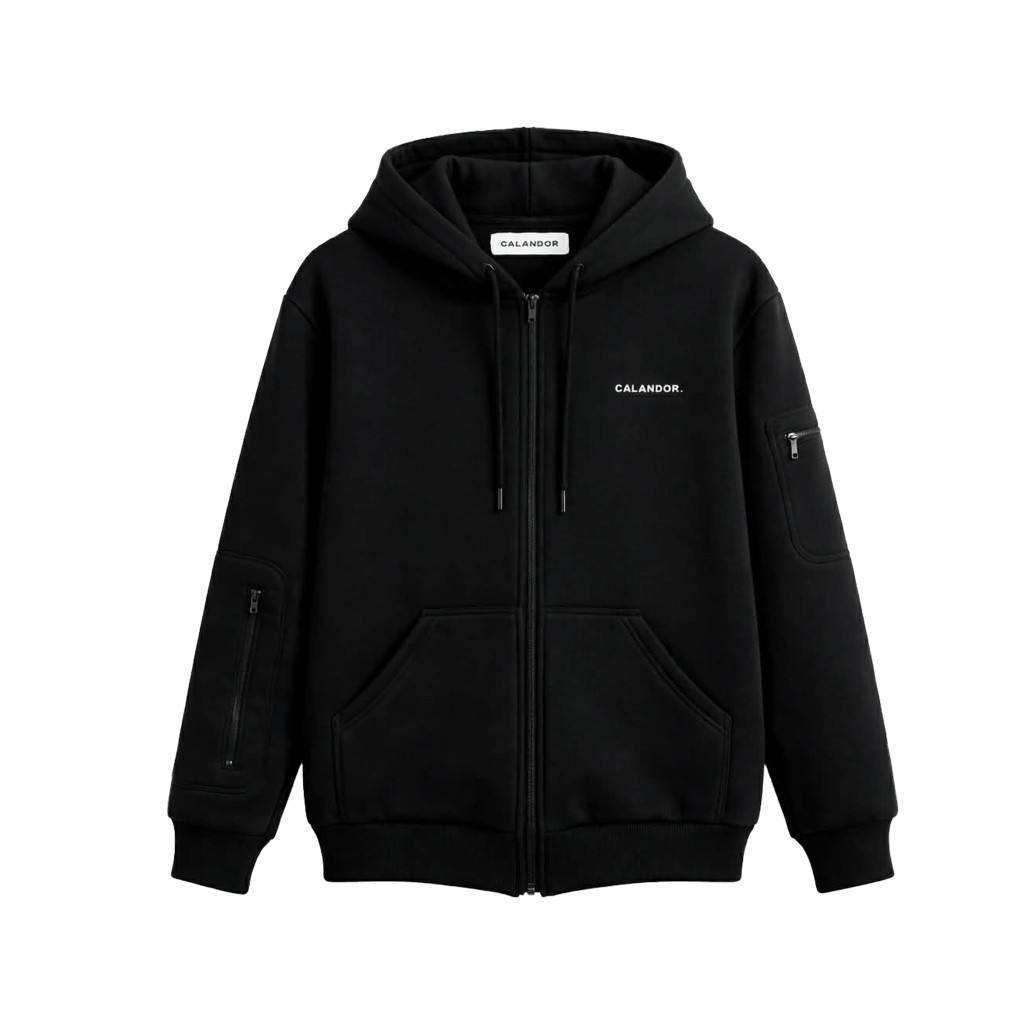 Utazós pulóver, cipzáros - Fekete (unisex)